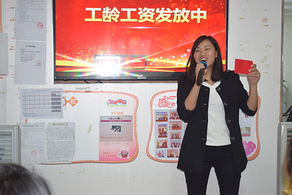 在本次大會是由我們創(chuàng)勝大才子蔡經(jīng)理擔任大會主持人,大家都熱情高漲,月會以一首充滿活力的舞蹈—抓錢舞開場,主持人串詞,接著對優(yōu)秀員工頒獎,有如下獎項:最佳業(yè)績突破獎、銷售新人進步獎、服務明星獎、最佳服務獎、陽光心態(tài)獎、3月份個人業(yè)績季軍、3月份個人業(yè)績亞軍、3月份個人業(yè)績冠軍、3月銷售冠軍團隊獎。然后總經(jīng)理上臺講話、主持人邀請行政部經(jīng)理宣讀工齡工資制度、主持人串詞結(jié)束月會。