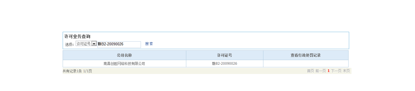 2、在箭頭位置輸入短信公司的《增值電信業(yè)務(wù)經(jīng)營(yíng)許可證》編號(hào),比如萬(wàn)商超信的增值業(yè)務(wù)許可證:贛B2-20090026,在左下角許可證號(hào)輸入點(diǎn)擊查詢